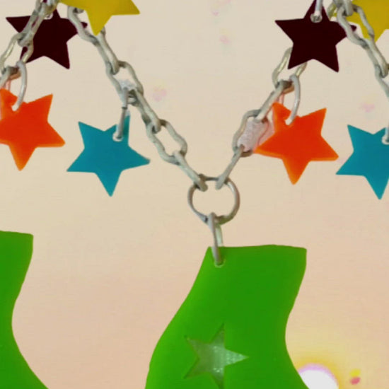Fantastic Plastic Green Star Roller Skate Necklace - One Of a Kind!