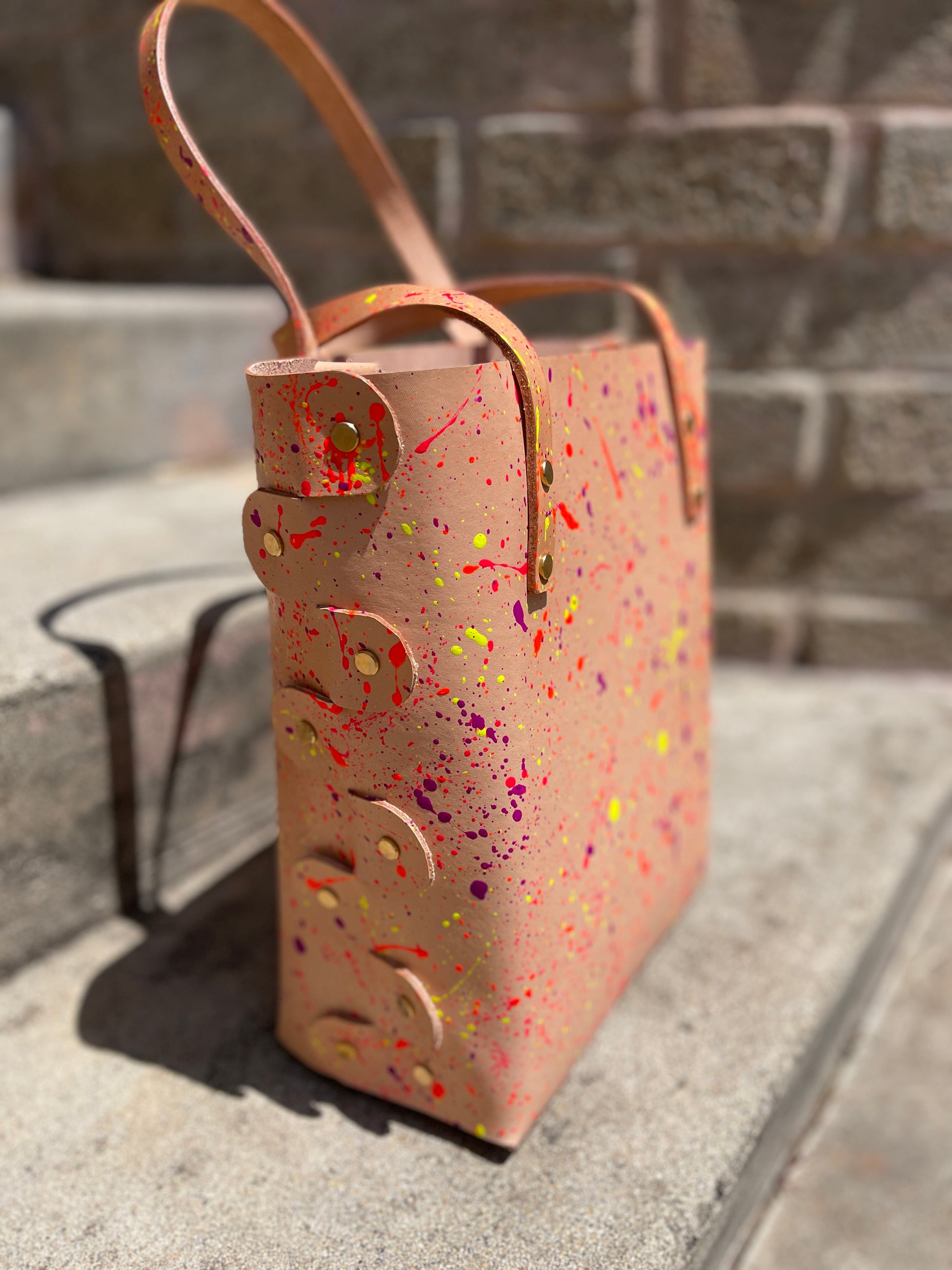 Neon Splatter Veg Tan Open Top Crossbody Tote