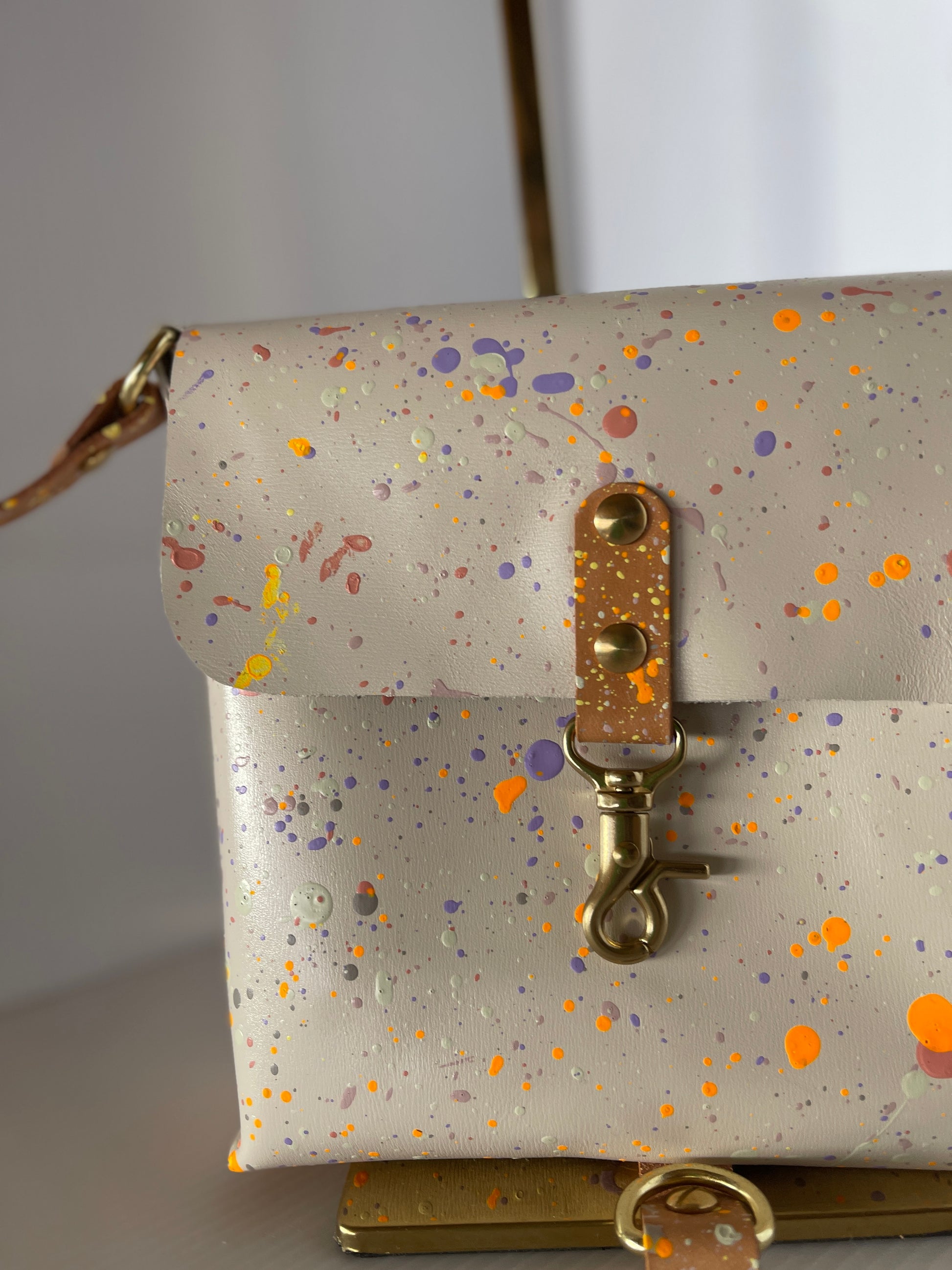 Pastel Splatter Leather Square Flap Shoulder Bag